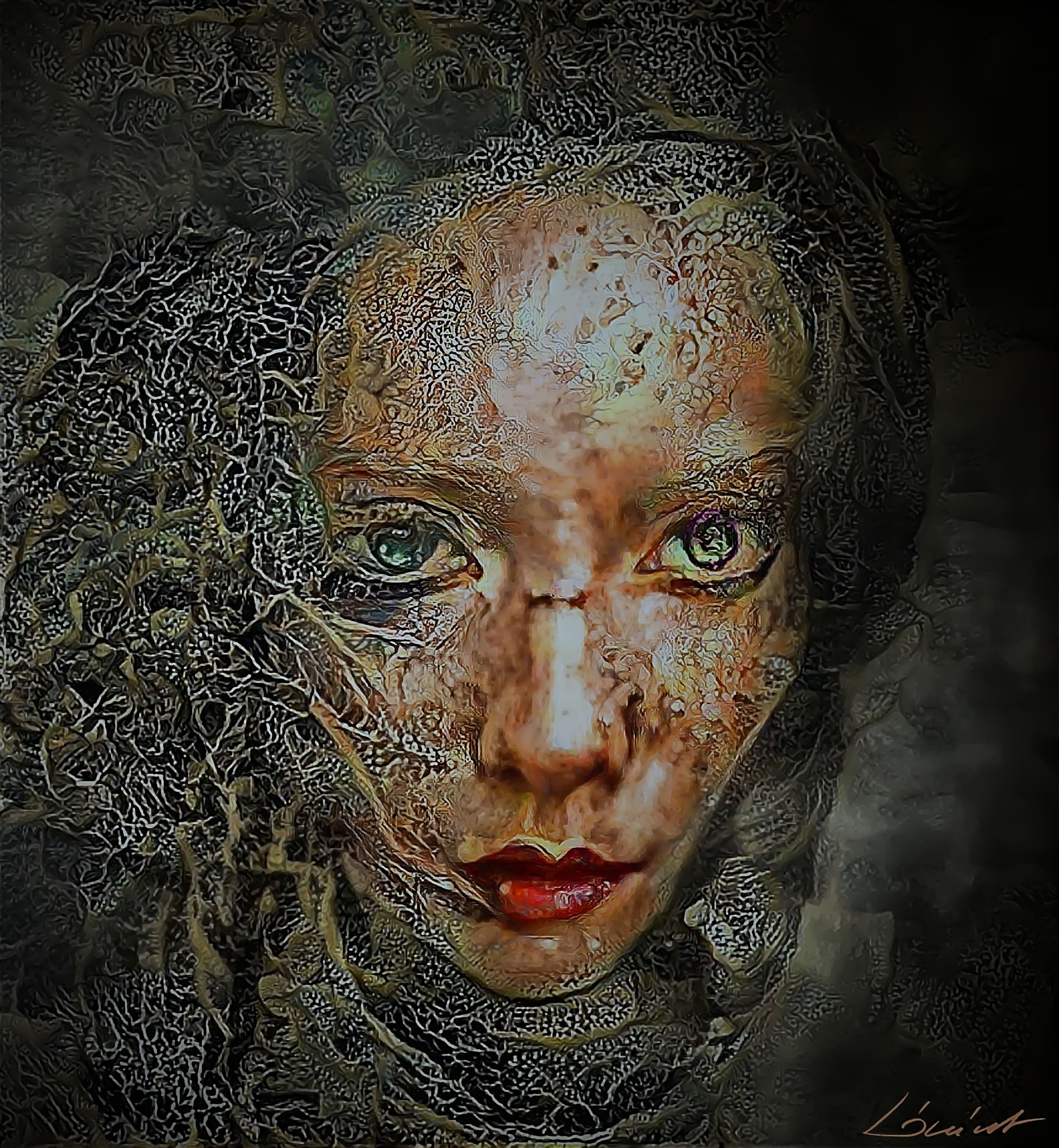 Roots. Portrait, fractal and self-impressions meet in this image. When preserving the picture, both preserving the mystique and bringing together special techniques was important. Roots is one of my most successful pieces of special portraits.